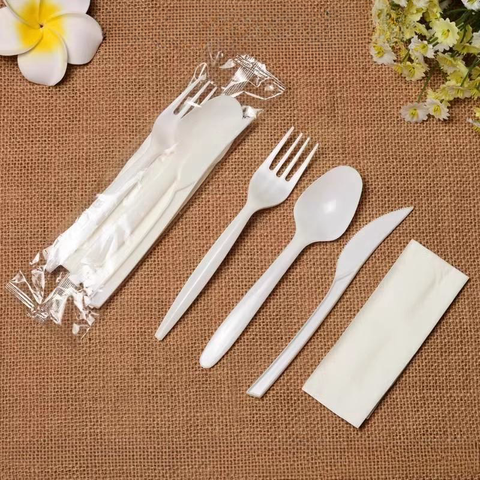 Pacotes De Talheres De Plástico Conjuntos De Colher De Garfo De Faca Branco Kits De Talheres Envolvido Individualmente
